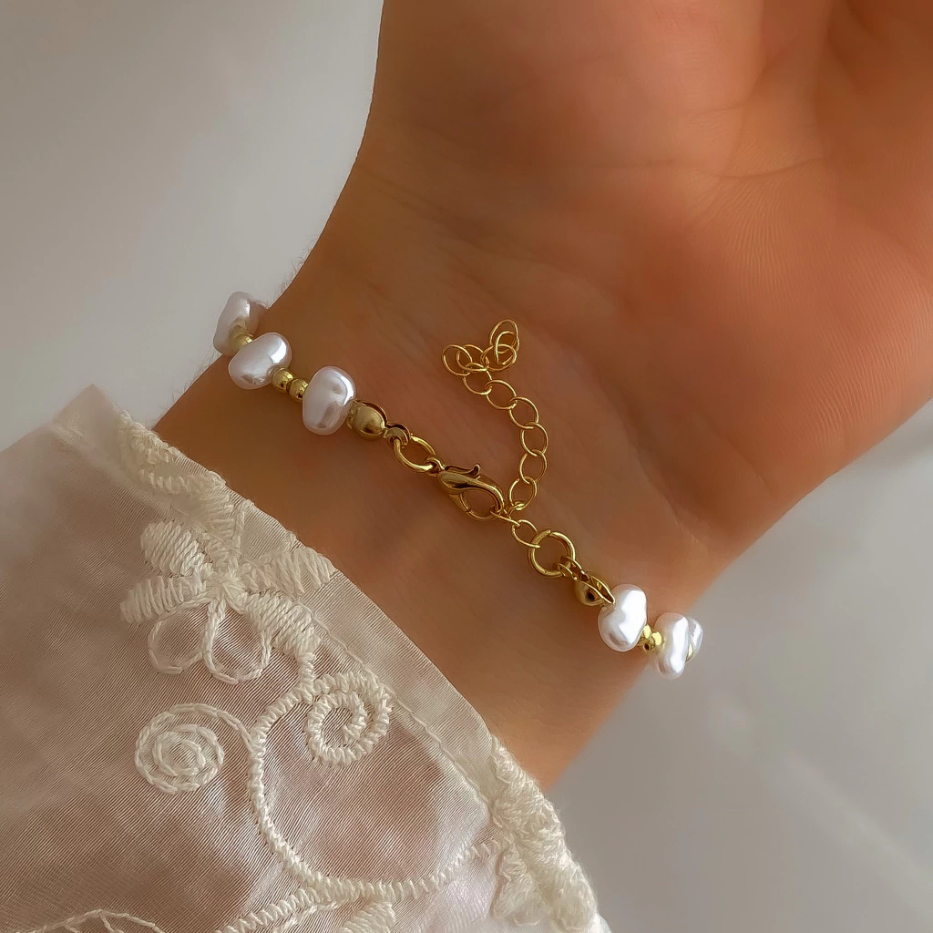 Pulsera con sÍmil perlas y bolitas lisas combinadas.