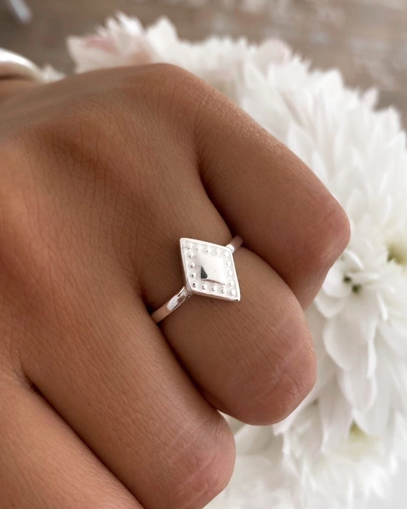 ANILLO ROMBO CON PUNTOS LABRADOS DE PLATA 925