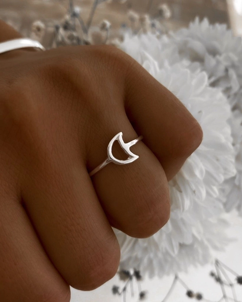 ANILLO LISO LUNA CALADA DE PLATA 925