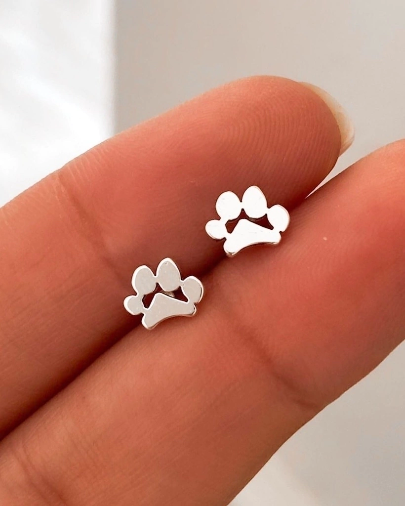 PAR DE AROS HUELLITAS DE PERRO DE ACERO BLANCO