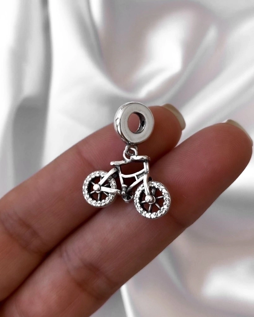 DIJE CHARM BICICLETA CON CIRCONIAS INCRUSTADAS, PARA PULSERA REDONDA, DE PLATA 925