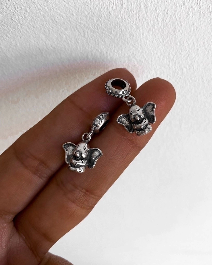 DIJE CHARM ELEFANTE DUMBO CON CIRCONIAS INCRUSTADAS, PARA PULSERA REDONDA, DE PLATA 925