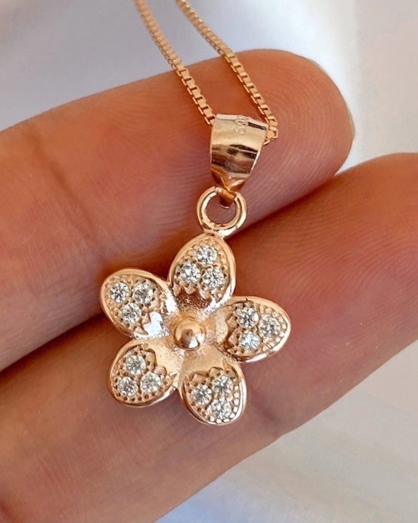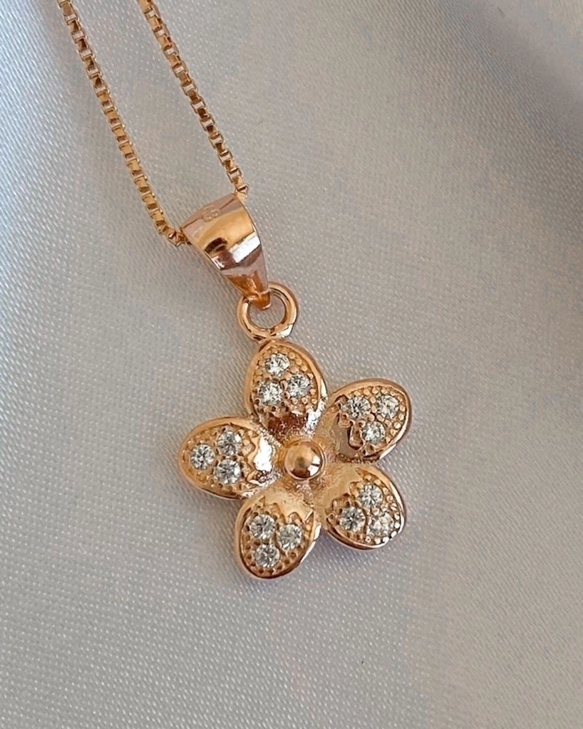 DIJE FLOR DE CINCO PETALOS CON CIRCONIAS INCRUSTADAS DE PLATA 925 ROSÉ