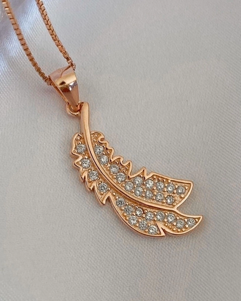 DIJE PLUMA CON CIRCONIAS INCRUSTADAS DE PLATA 925 ROSÉ