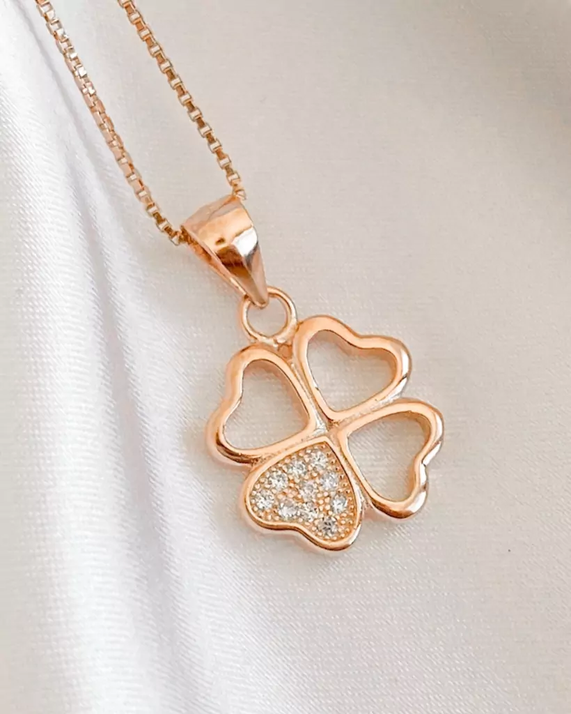 DIJE TRÉBOL 4 HOJAS CON MINI CIRCONIAS DE PLATA ROSÉ 925
